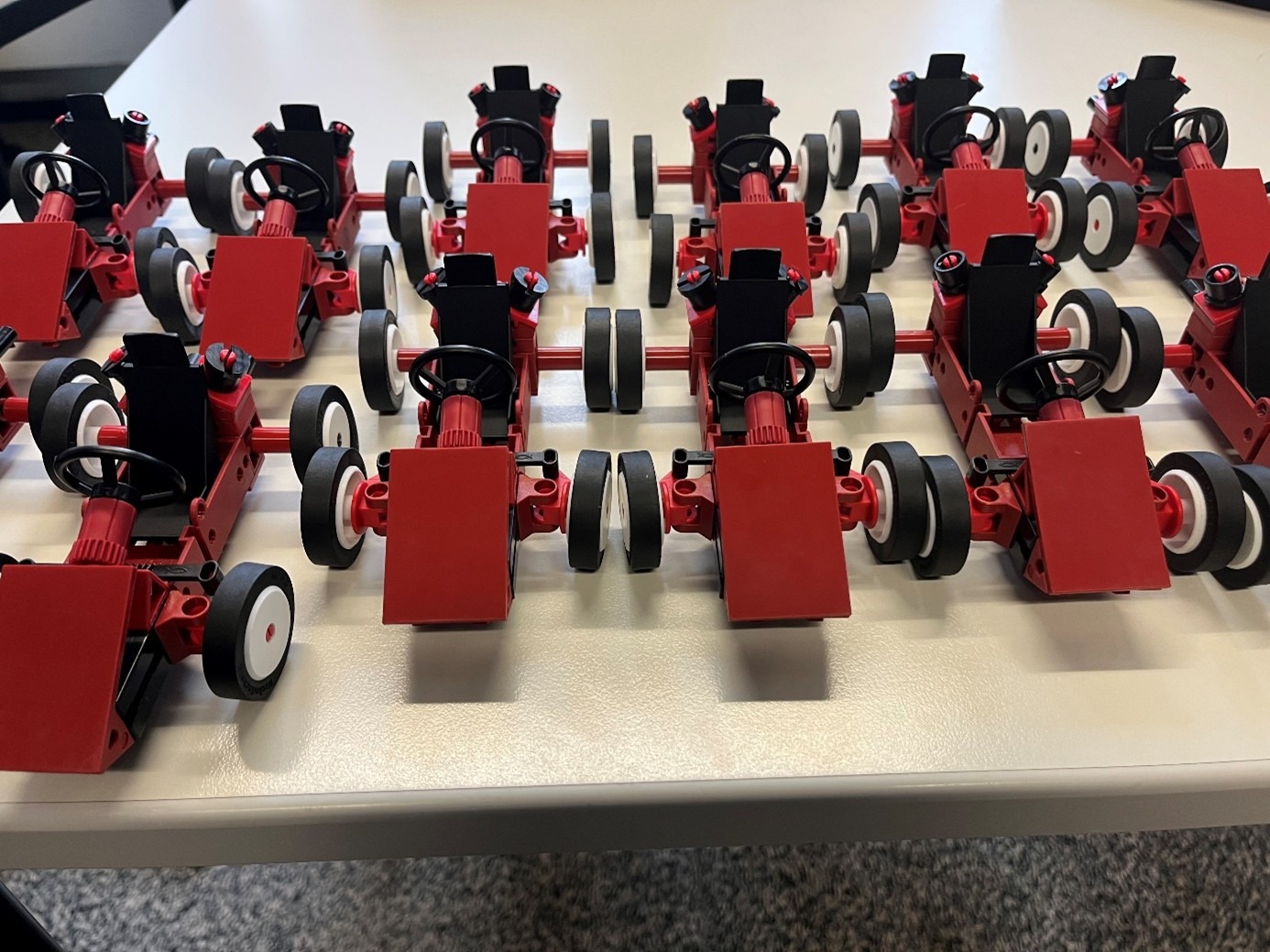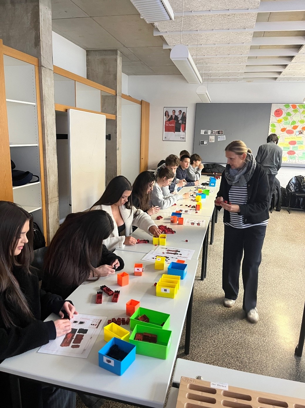 Unterrichtseinheit im Fach Betriebswirtschaftslehre auf dem Programm. Statt trockener Theorie erlebten sie die Grundlagen des Produktionsmanagements durch eine spannende Übung. Mit Hilfe speziell vorbereiteter Fischertechnik-Baukästen schlüpften die Lernenden in die Rolle von Produktionsmitarbeitern und stellten Modellautos her. Dabei wurden nacheinander zwei zentrale Fertigungsverfahren simuliert: die klassische Serienfertigung (Reihenfertigung) und die moderne Inselfertigung.